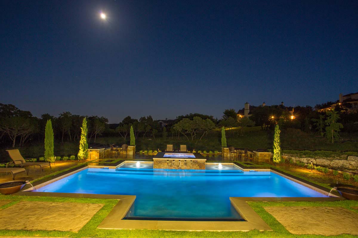 Luxury pool design also includes functional upgrades that improve comfort and usability. Built-in spas, seating areas, tanning ledges, steps, and custom lighting are common features that enhance the pool experience. These elements are designed to serve a purpose while maintaining a clean, integrated look. Modern lighting systems extend pool use into the evening, while thoughtful seating and entry points improve accessibility.